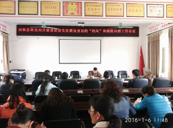 2016年1月6日上午,bet365亚洲真人为深入贯彻落实县委、县纪委会议精神,在林业系统部署召开查处发生在群众身边的"四风"和腐败问题工作会议。会议由黄承新局长主持,局领导班子和全体职工干部参加会议。