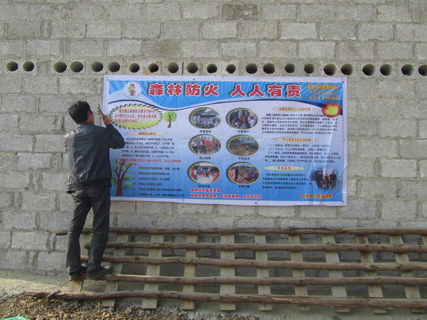 在全县范围内利用多种形式,宣传《森林防火条例》、宣讲森林防火典型事例和案例,悬挂横幅、张贴标语、发森林防火宣传画册、资料等,扩大社会影响力。组织森林防火宣传车深入到山间田野、圩镇集市开展流动宣传。据统计,共发放宣传图画3.4万张,森林防火宣传手册5000本,扑火安全知识手册1万本,宣传手提袋6000个,更换大型宣传牌画面(双面)12张,刷写固定标语30条,不干胶宣传标语1万条,钉挂铝板宣传牌1000张,致农民朋友做好森林防火的一封信5000张,悬挂横幅30条,围裙6000个,森林防火宣传栏200张。
